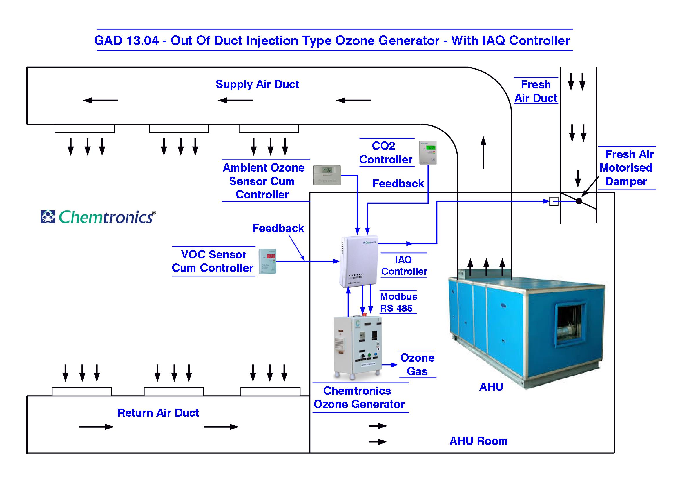 GAD 13.01 Out of Duct Injection type Ozone Generator Injection in Return Air Duct.
